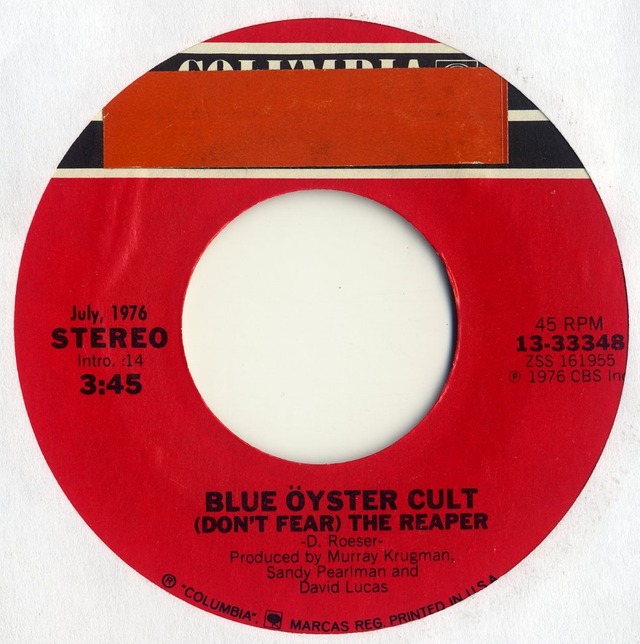 BLUE ÖYSTER CULT (Don't Fear) The Reaper / Career Of Evil COLUMBIA 1976 USA 7" -/ex- (large centre) *レーベル面にシール有り。商品画像をご参照ください。 New York出身の米国重要Hard Rock系バンドによる1976年リリース。 バンド最大のヒットとなる最高の哀愁Rock / PopナンバーをA面に収録! 元々ジャケット無しリリース。 後年XTCの名曲 "Mayor of Simpleton" のギターリフ・パターンにヒントを与える。