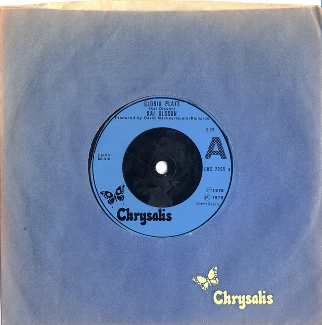 KAI OLSSON Gloria Plays / Easy Money CHRYSALIS 1978 UK 7" -/ex Company Sleeve付き。 英国70's Pop / FolkグループLongdancerのメインマンによる2ndシングル。 A面に盤石のPop Rockチューンを収録。聴く人によってはイントロからぶち上ります! よりしっとりしたB面曲もしみじみ超良いです。Kai Olsson最高~! 翌年リリースの2nd and Lastアルバム『Crazy Love』にA面収録、B面未収録。 元々ジャケット無し / 英国のみでリリース。