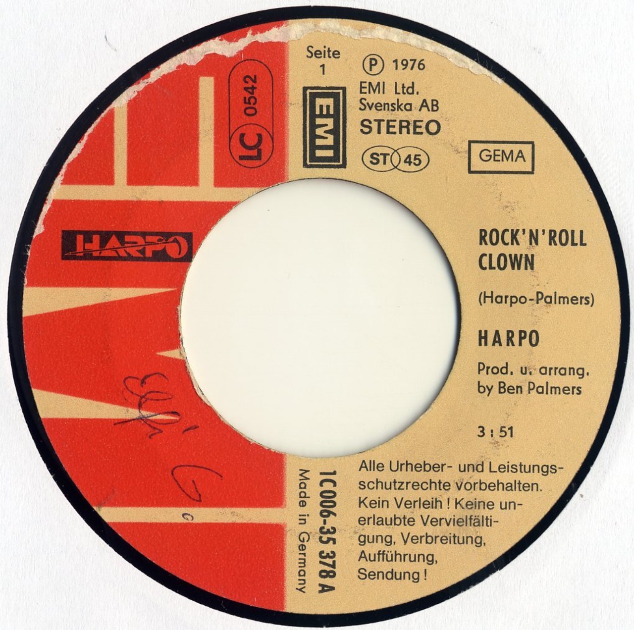 HARPO - Rock 'N' Roll Clown 7"